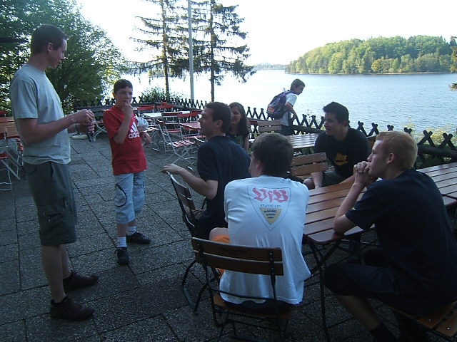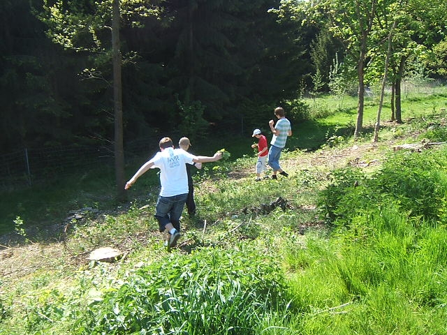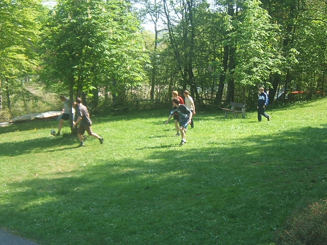Neben der Wanderung und einem Geländespiel (von dem es leider keine Bilder gibt) wurde wie immer viel Sport getrieben. Die leicht abschüssige Wiese scheint zwar nicht ganz so optimal zu sein, dennoch wird vom Freesbee, über Baseball und Kugelstoßen bis zu Fussball und Rugby alles praktiziert.
