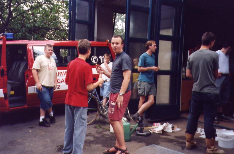 Der Elefant hatte nun eine Woche getrocknet und konnte bemalt werden. Zuerst wurde er weiß grundiert. Anschließend bekam er mit dem selbstgemischen blau seinen zweiten Anstrich. Als das Ganze getrocknet war, wurden die anderstfarbigen Körperteile inklusive Helm bemalt. Bevor wir ihn dann mit Klarlack schützten, bekam er noch das Helmabzeichen der Jugendfeuerwehr. Jetzt ist er ein richtiger Feuerwehrelefant.