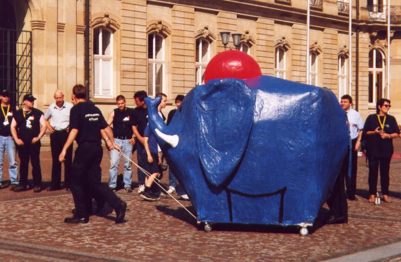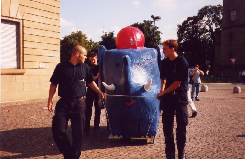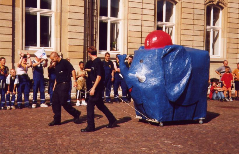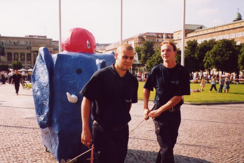 Dieses Jahr fand in Stuttgart der Landesjugendfeuerwehrtag statt. Neben einigen anderen Attraktionen stand auch ein großes Stadtspiel auf dem Programm. Die Jugendlichen wurden durch ganz Stuttgart geschickt um das Maskottchen der JF-Stuttgart zu suchen, den kleinen, blauen Feuerwehrelefant. Dieser wurde dann am Ende des Spiels auf dem Schloßplatz gefunden.