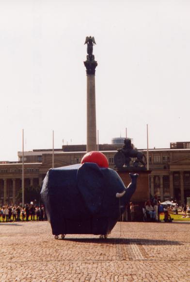 Es ist geschafft, nach 8 Wochen intensivem basteln und bauen steht der fertige Elefant im Zentrum Stuttgarts. Ist er nicht schön ?!?