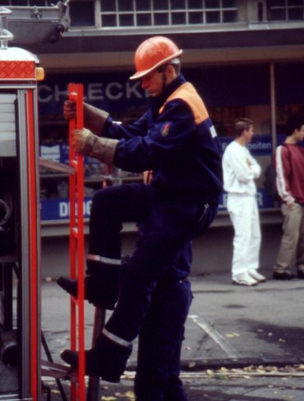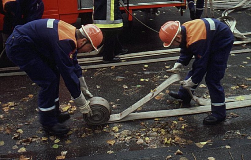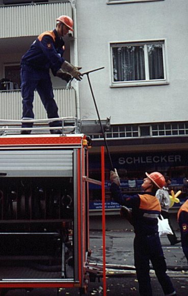 | Abbau einer C-Leitung | das Standrohr soll aufs Dach | Maschinist aufs Dach |