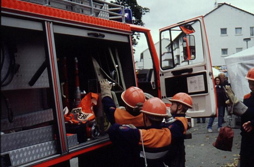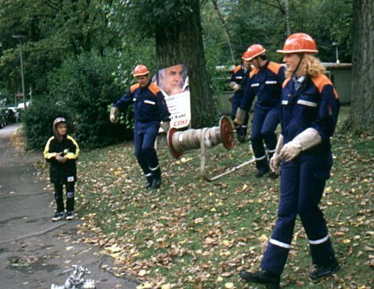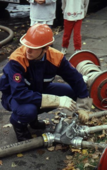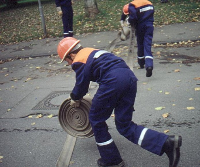 Traditionell zeigt die Jugendfeuerwehr Heumaden bei der Fleckenbatsch auf dem Festplatz ihr Können im Rahmen einer Schauübung. Hier einige Bilder von der Fleckenbatsch 1998